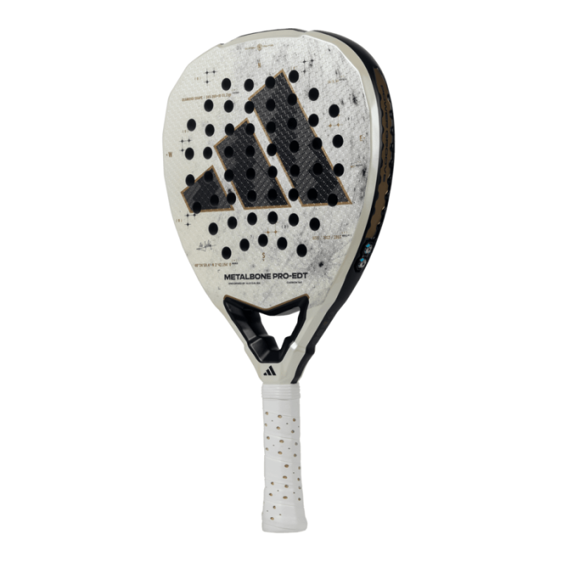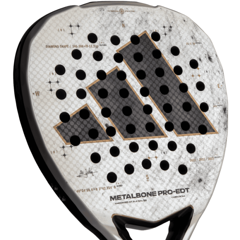 La Metalbone PRO-EDT 2025 es una pala de potencia con todas las características para satisfacer las necesidades de los jugadores de nivel PRO. La combinación de carbono aluminizado 16K, aporta rigidez y durabilidad, ideal para jugadores que golpean fuerte . La goma EVA Soft Performance aporta baja densidad que proporciona una gran salida de la bola y comodidad en el juego. Pero más allá de sus cualidades, esta pala representa un momento: el de transformar el juego en algo más grande. El POWER EXTRA GRIP (12cm) una empuñadura de mayor longitud, nuestra revolucionaria tecnología que traslada mayor masa hacía la cabeza de la pala, la forma de la cabeza DIAMOND OVERSIZE; con más peso situado en la parte superior de la pala que hace que la inercia aumente, y la tecnología LOW POLY, con un diseño poliédrico del marco y corazón de la pala, aportan una mayor potencia en los golpes. Se entrega con un estuche premium de diseño personalizado, creado especialmente para esta edición. Además viene firmada por Ale Galán.
