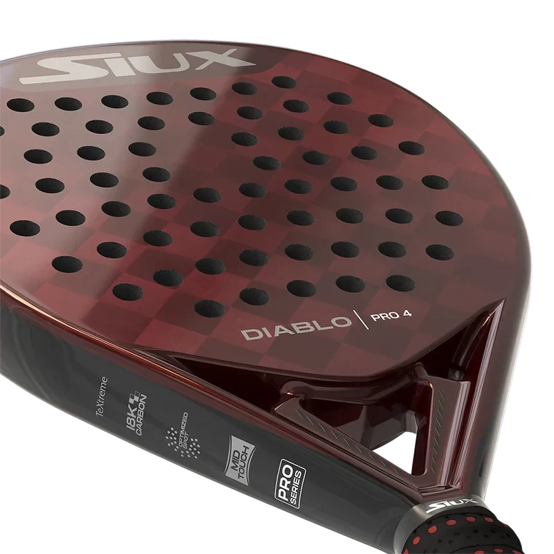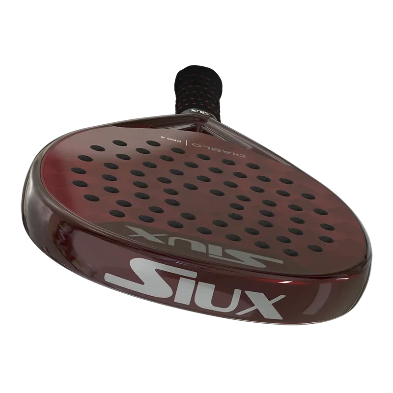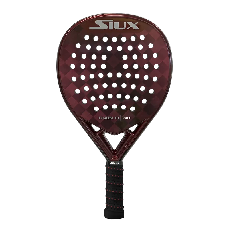 La nueva Siux Diablo Pro 4 es una pala de pádel profesional pensada para jugadores exigentes que necesitan una herramienta versátil, capaz de adaptarse a todas las fases del juego con alto rendimiento. Por ello, es la pala elegida por Tino Libaak, jugador profesional de pádel, para sus partidos de 2025. Su forma híbrida y balance medio ofrecen una perfecta combinación entre control y potencia, ideal para dominar tanto desde el fondo como en la red.